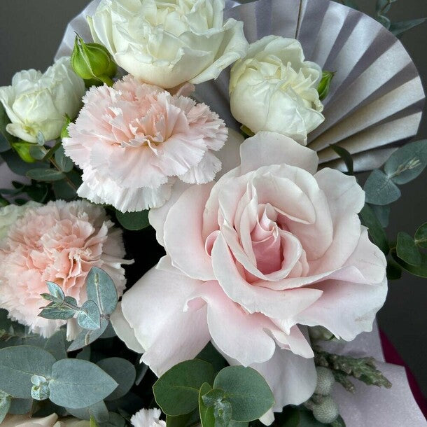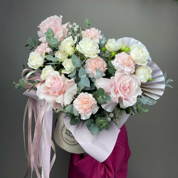 Velvet box with a wow rose, fragrant bush, and lace diantus
